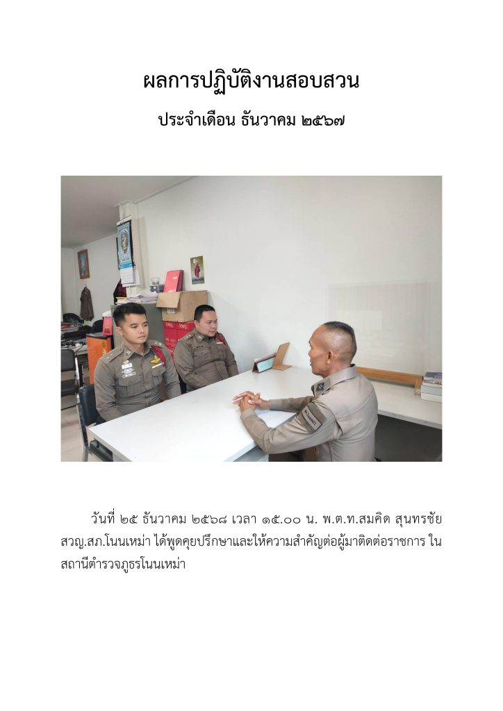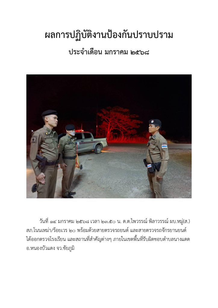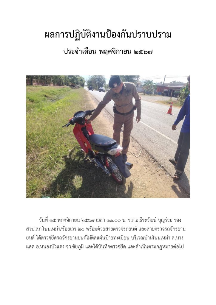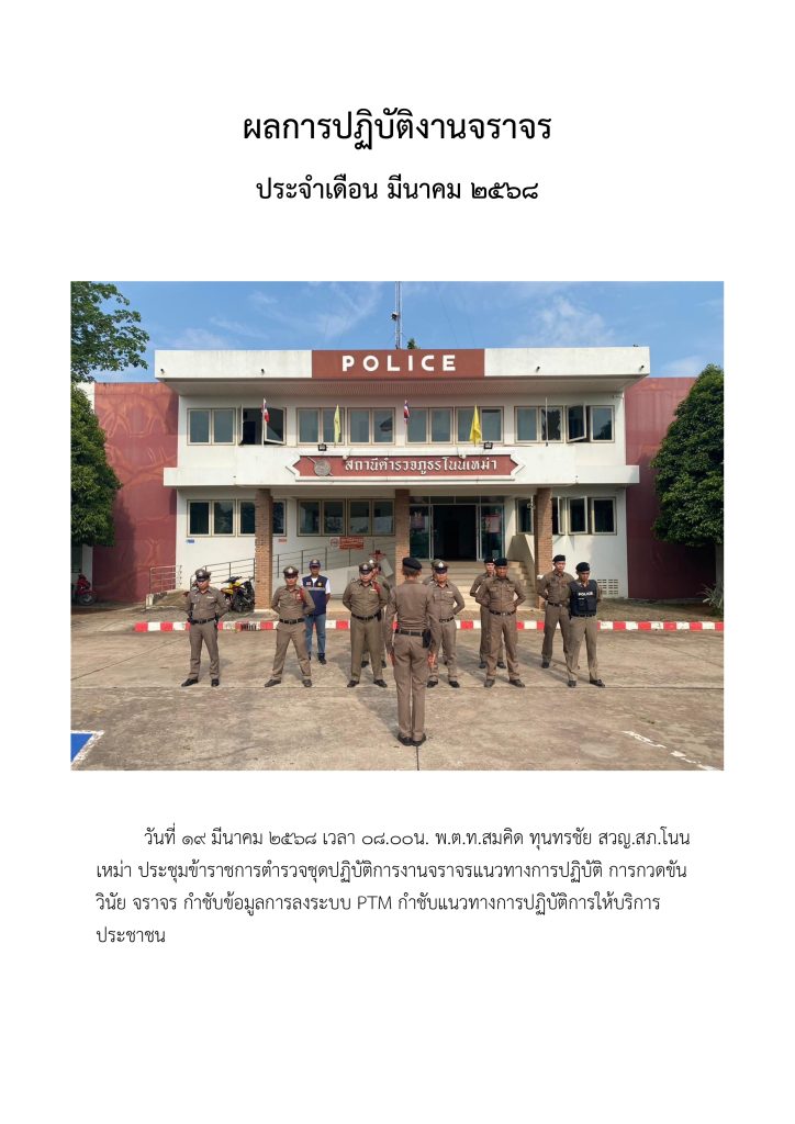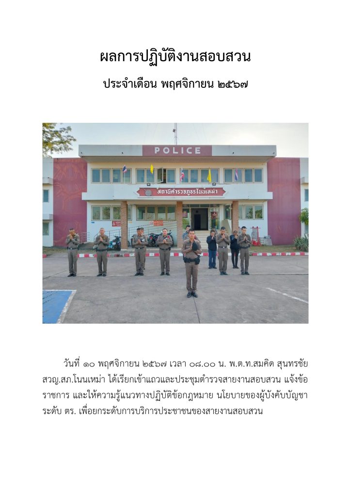 O7 ผลการปฏิบัติงานของแต่ละสายงาน 2025-04-08 โดย admin nonmao / ไม่มีหมวดหมู่ ผลการปฏิบัติงานอำนวยการ สถานีตำรวจภูธรโนนเหม่า ผลการปฏิบัติงานป้องกันปราบปราม สถานีตำรวจภูธรโนนเหม่า ผลการปฏิบัติงานจราจร สถานีตำรวจภูธรโนนเหม่า ผลการปฏิบัติงานสอบสวน สถานีตำรวจภูธรโนนเหม่า ผลการปฏิบัติงานสืบสวน สถานีตำรวจภูธรโนนเหม่า
