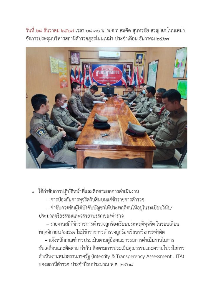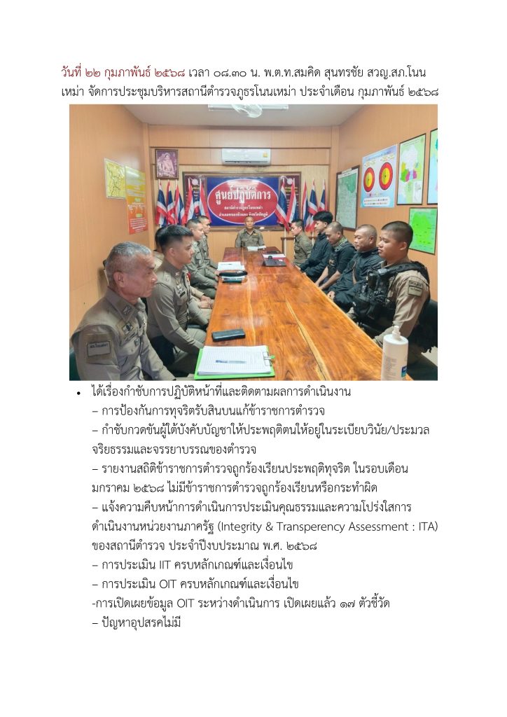การประชุม กำชับและติดตามการปฏิบัติทุกเดือน